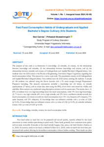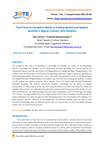 Devi, Carrisa and Prihastuti, Ekawatiningsih (2024) Fast food consumption habits of undergraduate and applied bachelor's degree culinary arts students. Journal of Culinary Technology and Education, 1 (1): 5. pp. 42-49. ISSN 3063-2978