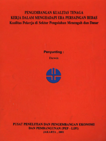 Darwin, Darwin and Endang Sri, Soesilowati and M, Soekarni and Suryati, Rizal (2001) Pengembangan kualitas tenaga kerja dalam menghadapi era persaingan bebas: kualitas pekerja di sektor pengolahan menengah dan dasar. Project Report. P2E LIPI, Jakarta.