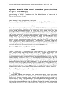 | Uncontrolled Keywords: | HPLC, optimasi, kunyit, flavonoid, quercetin |