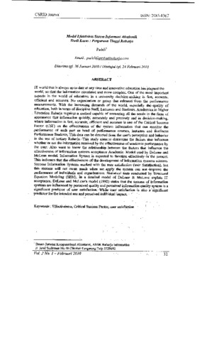 Padeli, Padeli (2010) Model efektivitas sistem informasi akademik: studi kasus Peguruan Tinggi Raharja. CSRID Journal, 2 (1): 3. pp. 32-46. ISSN 2085-1367