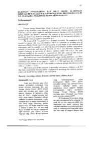 Protein Energy Malnutrition (PEM) as known as K.E.P is national seriously problem in this monetary crisis situation. To increase the children nutrient status with K.E.P not only by a medic approach and health services, but also involve the knowledge aspect, attitude and parent's behavior. The purpose of this research is in order to analyse the relationship between knowledge, attitude in K.E.P and parent's behavior in increasing the children nutrient status by K.E.P. The design of this research is cross sectional reasearch. The population of this research is parent who have the children with K.E.P problem at working area of Mojowarno Public Health Center in Jombang City. A total sample of this research is 48 respondents and the samples were taken by purposive sampling method. Independent variable is knowledge and parent's behavior in K.E.P and dependent variable is parent's behavior in increasing of children nutrient status with K.E.P. The data collecting method of this research is quesionnaire. The data analysing that used is Spearman Rank Correlation test with the meaning level value is p < 0.005. The result of this research available get the values and the statements i.e. it have relationship between parent's knowledge level in K.E.P and parent's behavior with low correlation that showed in the value p = 0.034, r = 0.307 and have the relationship between parent's behavior in K.E.P and middle correlation attitude that showed in the value p = 0.004, r = 0.411. The conclusion of this research is knowledge and parent's behavior in K.E.P that have ralationship between parent's behavior in increasing the children nutrient status with K.E.P and the middle or low correlation.