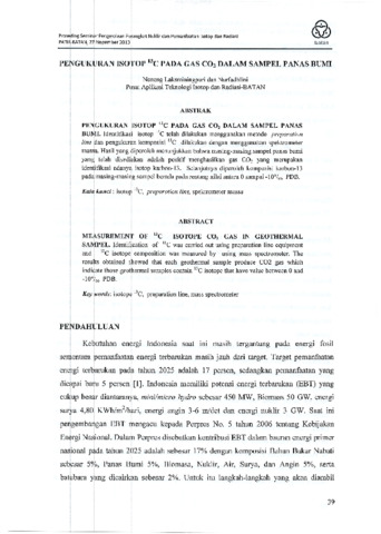 Laksminingpuri, Neneng and Nurfadli, Nurfadli (2013) Pengukuran Isotop 13C pada gas Co2 Dalam Sampel Panas Bumi. In: Proseding seminar Pengelolaan Perangkat Nuklir dan Pemanfaatan Isotop dan Radiasi PATIR-BATAN 27 November 2013, 27 November 2013, jakarta.