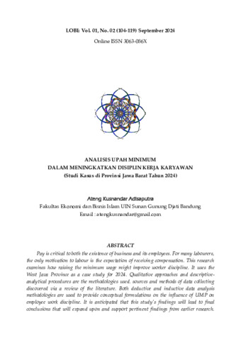 Ateng, Kusnandar Adisaputra (2024) Analisis upah minimum dalam meningkatkan disiplin kerja karyawan (studi kasus di Provinsi Jawa Barat tahun 2024). Lobi: Jurnal Ekonomi, Manajemen, Bisnis Islam, 1 (2): 1. pp. 104-119. ISSN 3063-086X