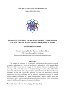 | Uncontrolled Keywords: | Bank Indonesia, Jumlah uang beredar, Kebijakan moneter, Money supply, Monetary policy |