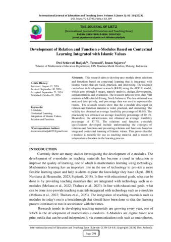 Dwi, Setiawati Radjak and Turmudi, Turmudi and Imam, Sujarwo (2024) Development of relation and function e-modules based on contextual learning integrated with Islamic values. International Journal of Education and Teaching Zone, 3 (3): 5. pp. 291-307. ISSN 2963-7899
