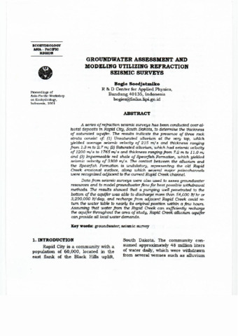 Bogie, Soedjatmiko (2001) Groundwater assessment and modeling utilizing refraction seismic surveys. In: Proceedings Asia-Pacific Workshop on Ecohydrology, 20-22 Maret 2001, Museum Zoologi Cibinong.