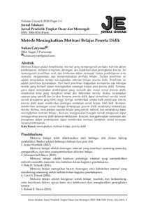 | Uncontrolled Keywords: | Meningkatkan, Motivasi belajar, Peserta didik, Learning motivation, Students, Learning methods |