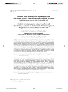 | Uncontrolled Keywords: | Actinomycetes, Kromatografi lapis tipis, Bioautografi, Euchema cottonii, Staphylococcus aureus, Escherichia coli, Thin layer chromatography |