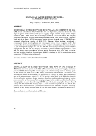 Kata kunci: revitalisasi batere, beban-beban sistem UPS