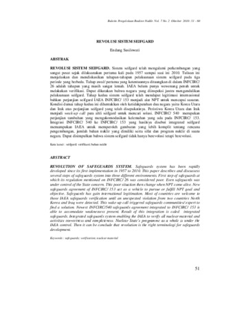 REVOLUSI SISTEM SEIFGARD. Sistem seifgard telah mengalami perkembangan yang sangat pesat sejak dilaksanakan pertama kali pada 1957 sampai saai ini 2010. Tulisan ini menjelaskan dan mendiskusikan tahapan-tahapan pelaksanaan sistem seifgard pada tiga periode yang berbeda. Tahap awal/ pertama yang ketentuannya dituangkan di dalam INFCIRC/ 26 adalah tahapan yang masih sangat lemah. IAEA belum punya wewenang penuh untuk melakukan verifikasi. Dapat dikatakan bahwa negara yang diinspeksi justru mengendalikan pelaksanaan seifgard. Tahap kedua sistem seifgard telah mendapat legitimasi internasional bahkan perjanjian seifgard IAEA INFCIRC/ 153 menjadi alat NPT untuk mencapai sasaran. Kondisi damai tahap kedua ini dihentakkan oleh ketidakpatuhan dua negara yaitu Korea Utara dan Irak atas perjanjian seifgard yang telah disepakatinya. Peristiwa Korea Utara dan Irak menjadi weak-up call para ahli seifgard untuk mencari solusi. INFCIRC/ 540 merupakan perjanjian tambahan yang mengakomodasikan kelemahan yang ada pada INFCIRC/ 153. Integrasi INFCIRC/ 540 ke INFCIRC/ 153 yang hasilnya disebut integrated seifgard memampukan IAEA untuk memperoleh gambaran yang lebih komplit tentang rencana pengembangan, jumlah bahan nuklir yang dimiliki serta sifat dan program nuklir di suatu negara. Dapat disimpulkan bahwa sistem seifgard tidak hanya berevolusi tetapi berevolusi. Kata kunci : seifgard; verifikasi; bahan nuklir