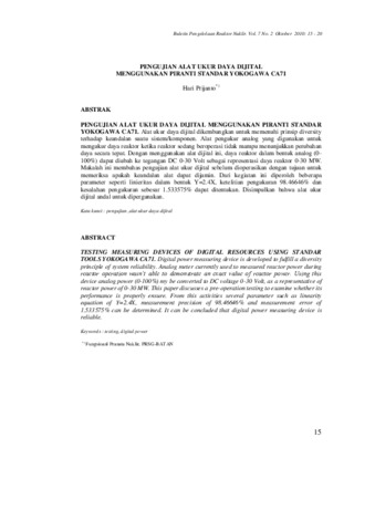 PENGUJIAN ALAT UKUR DAYA DIJITAL MENGGUNAKAN PIRANTI STANDAR YOKOGAWA CA71. Alat ukur daya dijital dikembangkan untuk memenuhi prinsip diversity terhadap keandalan suatu sistem/komponen. Alat pengukur analog yang digunakan untuk mengukur daya reaktor ketika reaktor sedang beroperasi tidak mampu menunjukkan perubahan daya secara tepat. Dengan menggunakan alat dijital ini, daya reaktor dalam bentuk analog (0-100%) dapat diubah ke tegangan DC 0-30 Volt sebagai representasi daya reaktor 0-30 MW. Makalah ini membahas pengujian alat ukur dijital sebelum dioperasikan dengan tujuan untuk memeriksa apakah keandalan alat dapat dijamin. Dari kegiatan ini diperoleh beberapa parameter seperti linieritas dalam bentuk Y=2.4X, ketelitian pengukuran 98.46646% dan kesalahan pengukuran sebesar 1.533575% dapat ditentukan. Disimpulkan bahwa alat ukur dijital andal untuk dipergunakan. Kata kunci : pengujian ,alat ukur daya dijital