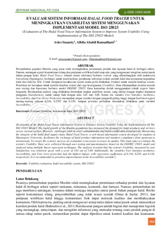 | Uncontrolled Keywords: | Evaluasi usabilitas, ketelusuran halal, ISO 25023 |