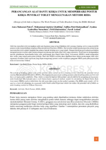 Aura, Maharani Puteri and Muhammad, Justicio Ghalifaiq and Salfina, Putri Rahmadhani and Syalma, Syahrafina Nurachma and Firli, Khairunnisa and Farell, Ardani (2024) Perancangan alat bantu kerja untuk memperbaiki postur kerja penyikat toilet menggunakan metode REBA. In: Prosiding Seminar Nasional Perhimpunan Ergonomi Indonesia (PEI), 8-9 Agustus 2024, Bandung.