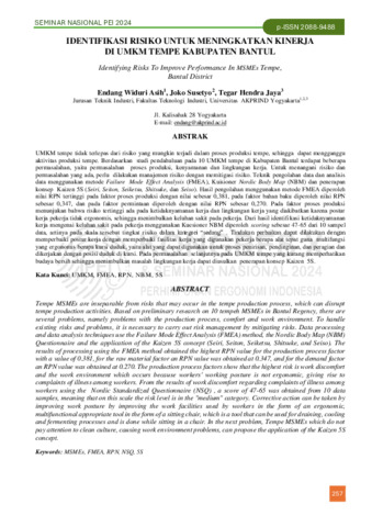 Endang, Widuri Asih and Joko, Susetyo and Tegar, Hendra Jaya (2024) Identifikasi risiko untuk meningkatkan kinerja di UMKM tempe Kabupaten Bantul. In: Prosiding Seminar Nasional Perhimpunan Ergonomi Indonesia (PEI), 8-9 Agustus 2024, Bandung.