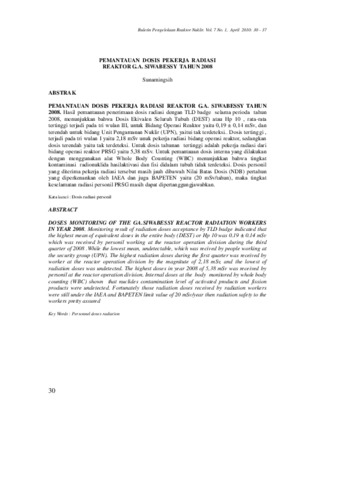 Sunarningsih, Sunarningsih (2010) PEMANTAU DOSIS PEKERJA RADIASI REAKTOR GA SIWABESSY TAHUN 2008. Buletin "Reaktor". ISSN ISSN: 0216-2695