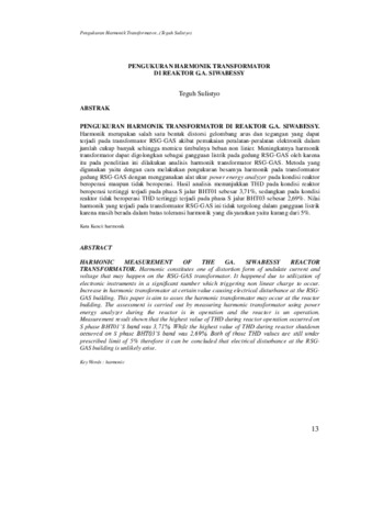 Teguh Sulistyo, TS (2010) PENGUKURAN HARMONIK TRANSFORMATOR DI REAKTOR GA SIWABESSY. Buletin "Reaktor". ISSN ISSN: 0216-2695