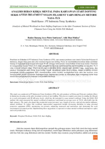 Raden, Danang Aryo Putro Satriyono and Atik, Dian Muliya (2024) Analisis beban kerja mental pada karyawan start doffing seksi after treatment nylon filament yarn dengan metode NASA-TLX studi kasus : PT Indonesia Toray Synthetics. In: Prosiding Seminar Nasional Perhimpunan Ergonomi Indonesia (PEI), 8-9 Agustus 2024, Bandung.