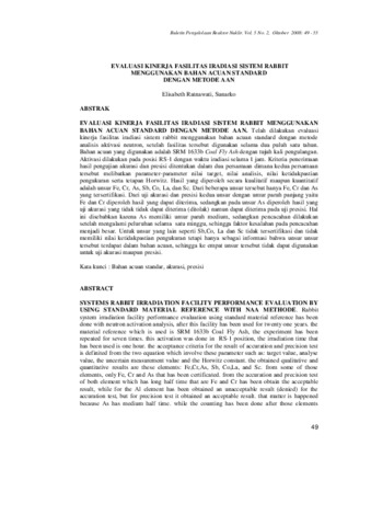 EVALUASI KINERJA FASILITAS IRADIASI SISTEM RABBIT MENGGUNAKAN BAHAN ACUAN STANDARD DENGAN METODE AAN. Telah dilakukan evaluasi kinerja fasilitas iradiasi sistem rabbit menggunakan bahan acuan standard dengan metode analisis aktivasi neutron, setelah fasilitas tersebut digunakan selama dua puluh satu tahun. Bahan acuan yang digunakan adalah SRM 1633b Coal Fly Ash dengan tujuh kali pengulangan. Aktivasi dilakukan pada posisi RS-1 dengan waktu iradiasi selama 1 jam. Kriteria penerimaan hasil pengujian akurasi dan presisi ditentukan dalam dua persamaan dimana kedua persamaan tersebut melibatkan parameter-parameter nilai target, nilai analisis, nilai ketidakpastian pengukuran serta tetapan Horwitz. Hasil yang diperoleh secara kualitatif maupun kuantitatif adalah unsur Fe, Cr, As, Sb, Co, La, dan Sc. Dari beberapa unsur tersebut hanya Fe, Cr dan As yang tersertifikasi. Dari uji akurasi dan presisi kedua unsur dengan umur paruh panjang yaitu Fe dan Cr diperoleh hasil yang dapat diterima, sedangkan pada unsur As diperoleh hasil yang uji akurasi yang tidak tidak dapat diterima (ditolak) namun dapat diterima pada uji presisi. Hal ini disebabkan karena As memiliki umur paruh medium, sedangkan pencacahan dilakukan setelah mengalami peluruhan selama satu minggu, sehingga faktor kesalahan pada pencacahan menjadi besar. Untuk unsur yang lain seperti Sb,Co, La dan Sc tidak tersertifikasi dan tidak memiliki nilai ketidakpastian pengukuran tetapi hanya sebagai informasi bahwa unsur unsur tersebut terdapat dalam bahan acuan, sehingga ke empat unsur tersebut tidak dapat digunakan untuk uji akurasi maupun presisi.