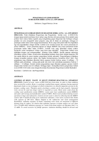 Subiharto, Subiharto and Unggul Hartoyo, UH and Irwan, Irwan (2008) PENGENDALIAN LIMBAH RESIN DI REAKTOR SERBA GUNA GA. SIWABESSY. Buletin "Reaktor". ISSN ISSN: 0216-2695