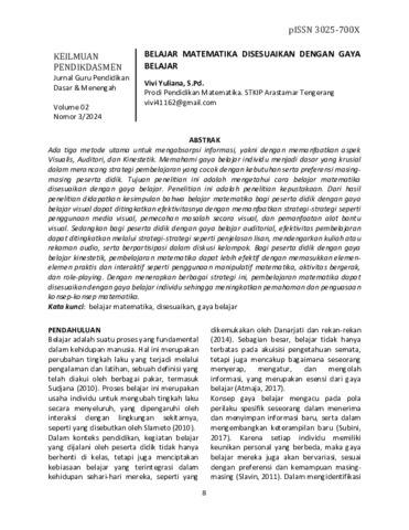 Vivi, Yuliana (2024) Belajar matematika disesuaikan dengan gaya belajar. Keilmuan Pendikdasmen: Jurnal Guru Pendidikan Dasar dan Menengah, 2 (3): 2. pp. 8-14. ISSN 3025-700X