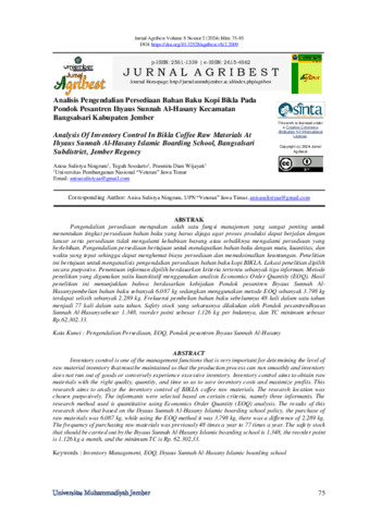 Anisa, Sulistya Ningrum and Teguh, Soedarto and Prasmita, Dian Wijayati (2024) Analisis pengendalian persediaan bahan baku kopi bikla pada Pondok Pesantren Ihyaus Sunnah Al-Hasany Kecamatan Bangsalsari Kabupaten Jember. Jurnal Agribest, 8 (2): 4. pp. 75-85. ISSN 2581-1339