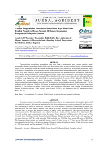 Pengendalian persediaan merupakan salah satu fungsi manajemen yang sangat penting untuk menentukan tingkat persediaan bahan baku yang harus dijaga agar proses produksi dapat berjalan dengan lancar serta persediaan tidak mengalami kehabisan barang atau sebaliknya mengalami persediaan yang berlebihan. Pengendalian persediaan bertujuan untuk mendapatkan bahan baku dengan mutu, kuantitas, dan waktu yang tepat sehingga dapat menghemat biaya persediaan dan memaksimalkan keuntungan. Penelitian ini bertujuan untuk menganalisis pengendalian persediaan bahan baku kopi BIKLA. Lokasi penelitian dipilih secara purposive. Penentuan informan dipilih berdasarkan kriteria tertentu sebanyak tiga informan. Metode penelitian yang digunakan yaitu kuantitatif menggunakan analisis Economics Order Quantity (EOQ). Hasil penelitian ini menunjukkan bahwa berdasarkan kebijakan Pondok pesantren Ihyaus Sunnah Al�Hasanypembelian bahan baku sebanyak 6.087 kg sedangkan menggunakan metode EOQ sebanyak 3.798 kg terdapat selisih sebanyak 2.289 kg. Frekuensi pembelian bahan baku sebelumnya 48 kali dalam satu tahun menjadi 77 kali dalam satu tahun. Safety stock yang seharusnya dilakukan oleh Pondok pesantren Ihyaus Sunnah Al-Hasanysebesar 1.348, reorder point sebesar 1.126 kg per bulannya, dan TC minimum sebesar Rp.62.302.33.