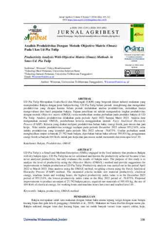 Sudirman, Sudirman and Wirawan, Wirawan and Editya, Hendrawarman (2024) Analisis produktivitas dengan metode Objective Matrix (Omax) pada UKM UD Pia Tulip. Jurnal Agribest, 8 (2): 7. pp. 105-112. ISSN 2581-1339