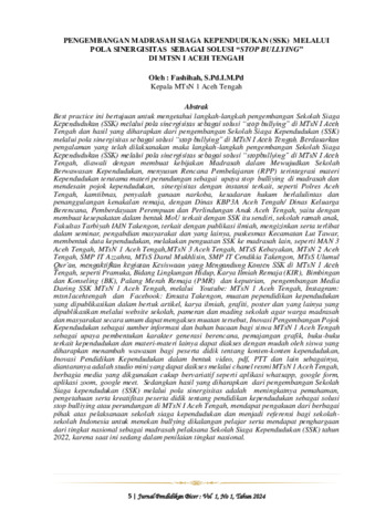 Fashihah, Fashihah (2023) Pengembangan Madrasah Siaga Kependudukan (SSK) melalui pola sinergisitas sebagai solusi “stop bullying” di MTsN 1 Aceh Tengah. Jurnal Pendidikan Bicer: Berdedikasi, Intelektual dan Cerdas, 1 (1): 2. pp. 5-18. ISSN 3048-2828