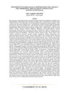 Best practice ini bertujuan untuk mengetahui langkah-langkah pengembangan Sekolah Siaga Kependudukan (SSK) melalui pola sinergisitas sebagai solusi “stop bullying” di MTsN I Aceh Tengah dan hasil yang diharapkan dari pengembangan Sekolah Siaga Kependudukan (SSK) melalui pola sinergisitas sebagai solusi “stop bullying” di MTsN I Aceh Tengah. Berdasarkan pengalaman yang telah dilaksanakan maka langkah-langkah pengembangan Sekolah Siaga Kependudukan (SSK) melalui pola sinergisitas sebagai solusi stop bullying” di MTsN I Aceh Tengah, diawali dengan membuat kebijakan Madrasah dalam Mewujudkan Sekolah Berwawasan Kependudukan, menyusun Rencana Pembelajaran (RPP) terintegrasi materi Kependudukan terutama materi perundungan sebagai upaya stop bulliying di madrasah dan mendesain pojok kependudukan, sinergisitas dengan instansi terkait, seperti Polres Aceh Tengah, kamtibnas, penyalah gunaan narkoba, kesadaran hukum berlalulintas dan penanggulangan kenakalan remaja, dengan Dinas KBP3A Aceh Tengah/ Dinas Keluarga Berencana, Pemberdayaan Perempuan dan Perlindungan Anak Aceh Tengah, yaitu dengan membuat kesepakatan dalam bentuk MoU terkait dengan SSK itu sendiri, sekolah ramah anak, Fakultas Tarbiyah IAIN Takengon, terkait dengan publikasi ilmiah, mengizinkan serta terlibat dalam seminar, pengabdian masyarakat dan yang lainya, puskesmas Kecamatan Lut Tawar, membentuk duta kependudukan, melakukan penguatan SSK ke madrasah lain, seperti MAN 3 Aceh Tengah, MTsN 1 Aceh Tengah,MTsN 3 Aceh Tengah, MTsS Kebayakan, MTsN 2 Aceh Tengah, SMP IT Azzahra, MTsS Darul Mukhlisin, SMP IT Cendikia Takengon, MTsS Ulumul Qur’an, mengaktifkan kegiatan Kesiswaan yang Mengandung Konten SSK di MTsN 1 Aceh Tengah, seperti Pramuka, Bidang Lingkungan Hidup, Karya Ilmiah Remaja (KIR), Bimbingan dan Konseling (BK), Palang Merah Remaja (PMR) dan keputrian, pengembangan Media Daring SSK MTsN 1 Aceh Tengah, melalui Youtube: MTsN 1 Aceh Tengah, Instagram: mtsn1acehtengah dan Facebook: Emsata Takengon, muatan pependidikan kependudukan yang dipublikasikan dalam bertuk artikel, karya ilmiah, grafiti, poster dan yang lainya yang dipublikasikan melalui website sekolah, pameran dan mading sekolah agar warga madrasah dan masyarakat secara umum dapat mengakses muatan tersebut, Inovasi Pengembangan Pojok Kependudukan sebagai sumber informasi dan bahan bacaan bagi siswa MTsN 1 Aceh Tengah sebagai upaya pembentukan karakter generasi berencana, pemajangan grafik, buku-bukuterkait kependudukan dan materi-materi lainya dapat diakses dengan mudah oleh siswa yang diharapkan menambah wawasan bagi peserta didik tentang konten-konten kependudukan, Inovasi Pendidikan Kependudukan dalam bentuk video, pdf, PTT dan lain sebagainya, diantaranya adalah studio mini yang dapat daikses melalui chanel resmi MTsN 1 Aceh Tengah, berbagia media yang dikgunakan cukup bervariatif seperti aplikasi whatsapp, google form, aplikasi zoom, google meet. Sedangkan hasil yang diharapkan dari pengembangan Sekolah Siaga kependudukan (SSK) melalui pola sinergisitas adalah meningkatnya pemahaman, pengetahuan serta kreatifitas peserta didik tentang pendidikan kependudukan sebagai solusi stop bulliying atau perundungan di MTsN I Aceh Tengah, mendapat pengakuan dari berbagai pihak atas pelaksanaan sekolah siaga kependudukan dan menjadi referensi bagi sekolahsekolah Indonesia untuk menekan bullying dikalangan pelajar serta mendapat penghargaan dari tingkat nasional sebagai madrasah pelaksana Sekolah Siaga Kependudukan (SSK) tahun 2022, karena saat ini sedang dalam penilaian tingkat nasional.