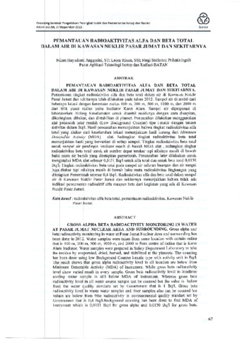 Pemantauan tingkat radioaactivitas alfa dan beta total dalam air di kawasan nuklir pasar Jumat dan sekitarnya telah dilakukan pada tahun 2012.