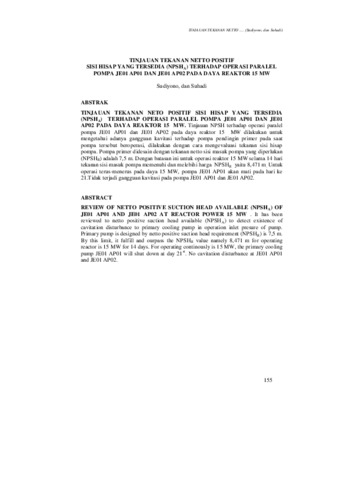 Sudiyono, SDY and Suhadi, Suhadi (2005) TINJAUAN TEKANAN NETTO POSITIF POMPA JE01 AP01 DAN JE01 AP02 PADA DAYA REAKTOR 15MW. Buletin "Reaktor". ISSN ISSN: 0216-2695