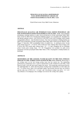 Diyah Erlina Lestari, DEL and Setyo Budi Utomo, SBU (2006) PEMANTAUAN KUALITAS AIR PENDINGIN PADA SISTEM PEMURNIAN AIR KOLAM BAHAN BAKAR BEKAS (FAK 01) RSG-GAS. Buletin "Reaktor". ISSN ISSN: 0216-2695