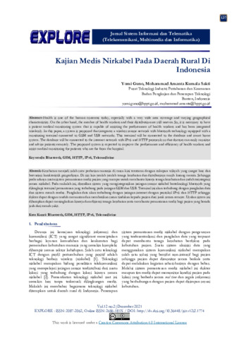 Guno, Yomi and Kumala Sakti, Mohammad Amanta (2021) Kajian Medis Nirkabel Pada Daerah Rural Di Indonesia. Explore:Jurnal Sistem informasi dan telematika, 12 (2). p. 137. ISSN 2087-2062