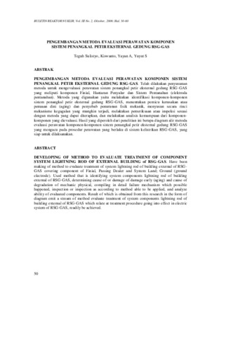 Teguh Sulistyo, TS and Kiswanto, Kiswanto and Andriyanto, Yayan and Suraniyanto, Yuyut (2006) pPENGEMBANGAN METODA EVALUASI PERAWATAN KOMPONEN SISTEM PENANGKAL PETIR EKSTERAL GEDUNG RSG-GAS. Buletin "Reaktor". ISSN ISSN: 0216-2695
