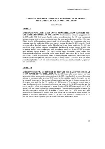 Slamet Wiranto, SW (2007) ANTISIPASI PENGARUH Xe-135 UNTUK MENGOPERASIKAN KEMBALI RSG-GAS SETELAH SCRAM PADA DAYA 15 MW. Buletin "Reaktor". ISSN ISSN: 0216-2695