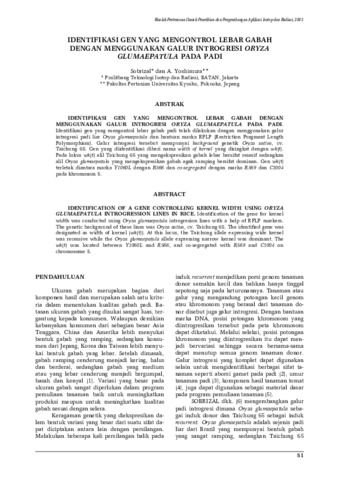 IDENTIFIKASI GEN YANG MENGONTROL LEBAR GABAH DENGAN