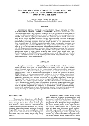 KONSERVASI PLASMA NUTFAH GALUR MUTAN NILAM SECARA IN-VITRO