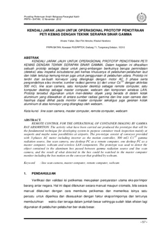 KENDALI JARAK JAUH UNTUK OPERASIONAL PROTOTIP PENCITRAAN PETI KEMAS DENGAN TEKNIK SERAPAN SINAR GAMMA. Dalam kegiatan ini dihasilkan sebuah prototip sebagai dasar untuk peng-embangan berikutnya berupa pemindaian (deteksi) atau inspeksi isi/substansi peti kemas khususnya di pelabuhan-pelabuhan laut dan tidak tertutup kemung-kinan juga untuk penggunaan di pelabuhan udara. Prototip ini terdiri dari se-buah konveyor yang dilengkapi dengan motor AC 3 phase serta pengendalinya atau inverter, sumber radiasi gamma (γ) dari unsur Cs137 dengan aktivitas 500 mCi, line scan camera, satu komputer desktop sebagai remote computer, satu komputer desktop sebagai master computer, webcam dan komponen wireless LAN. Prototip tersebut digunakan untuk men-deteksi obyek yang berada di dalam kotak aluminium yang dilewatkan di antara sumber radiasi gamma dan line scan camera dan hasilnya dapat dilihat pada monitor master computer sekaligus juga gerakan kotak aluminium di atas konveyor yang ditangkap oleh webcam.