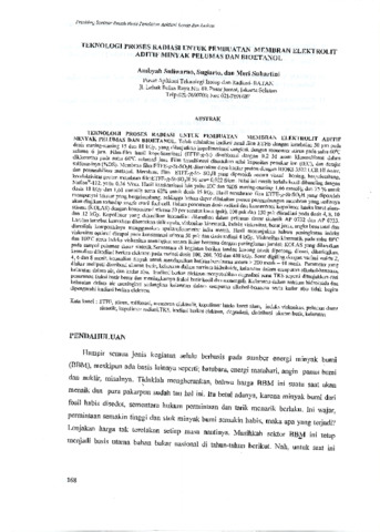 Suliwarno, Ambyah and Sugiarto, Sugiarto and Suhartini, Meri (2011) Teknologi Proses Radiasi Untuk Pembuatan Membran Elektrolit Aditif Minyak Pelumas dan Bioetanol. In: Prosiding Seminar Ilmiah Hasil Penelitian Aplikasi Isotop dan Radiasi, Jakarta 9 Desember 2011, 9 Desember 2011, Jakarta.