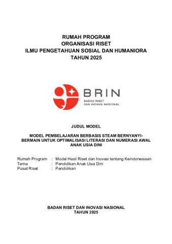 Suprapto, Suprapto and Opik, Abdurrahman Taufik and Nunu, Ahmad An Nahidl and Abdul, Manaf and Martha, Christianti and Muh, Asriadi Model Pembelajaran Berbasis Steam Bernyanyi-Bermain Untuk Optimalisasi Literasi Dan Numerasi Awal Anak Usia Dini. Pusat Riset Pendidikan. (Unpublished)