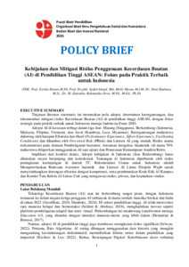 Farida, Hanun and Phil., Saiful Akmal and Melly, Masna and Deni, Hadiana and M., Zainudin and Rahmatika, Dewi Policy Brief: Kebijakan dan Mitigasi Risiko Penggunaan Kecerdasan Buat (AI) di Pendidikan Tinggi ASEAN: Fokus pada Praktik Terbaik untuk Indonesia. Pusat Riset Pendidikan, Badan Riset dan Inovasi Nasional. (Unpublished)