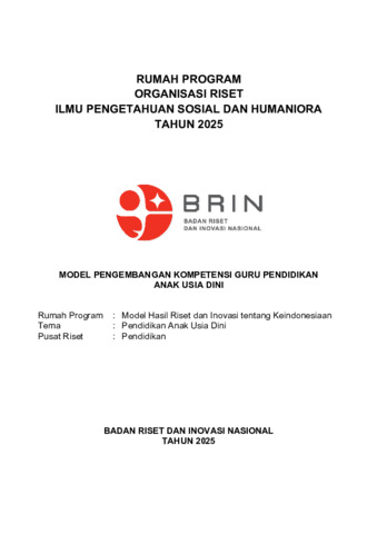 Nur, Listiawati Model Pengembangan Kompetensi Guru Pendidikan Anak Usia Dini. Pusat Riset Pendidikan, Badan Riset dan Inovasi Nasional. (Unpublished)