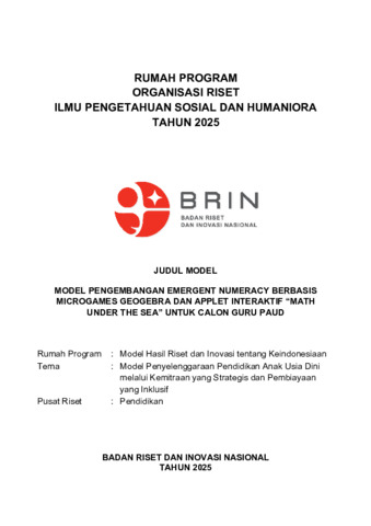 Seoharto, Seoharto and Sumarni, Sumarni and Abdul, Kadir Ahmad MODEL PENGEMBANGAN EMERGENT NUMERACY BERBASIS MICROGAMES GEOGEBRA DAN APPLET INTERAKTIF “MATH UNDER THE SEA” UNTUK CALON GURU PAUD. Pusat Riset Pendidikan, Badan Riset dan Inovasi Nasional. (Unpublished)
