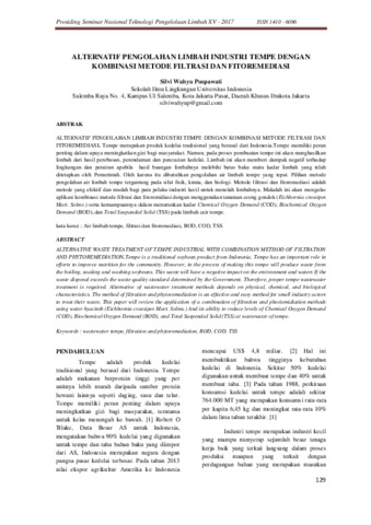 Puspawati, Silvi Wahyu (2017) ALTERNATIF PENGOLAHAN LIMBAH INDUSTRI TEMPE DENGAN KOMBINASI METODE FILTRASI DAN FITOREMEDIASI. SEMINAR NASIONAL TEKNOLOGI PENGOLAHAN LIMBAH XV 2017.