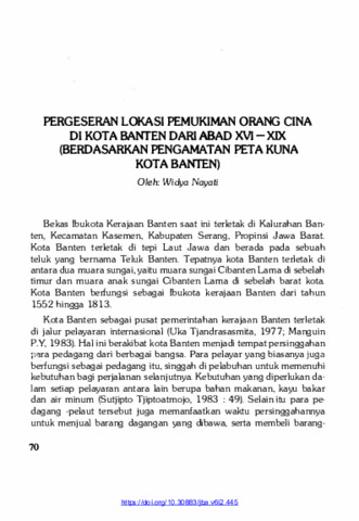 Nayati, Widya (1985) Pergeseran Lokasi Pemukiman Orang Cina di Kota Banten dari Abad XVI - XIX (Berdasarkan Pengamatan Peta Kuna Kota Banten). Berkala Arkeologi, 6 (2): 7. pp. 70-83. ISSN 0216 - 1419