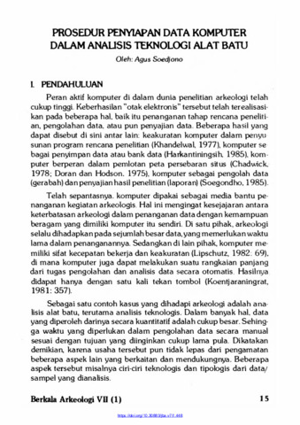 Soedjono, Agus (1986) Prosedur Penyiapan Data Komputer dalam Analisis Teknologi Alat Batu. Berkala Arkeologi, 7 (1): 2. pp. 15-26. ISSN 0216 - 1419