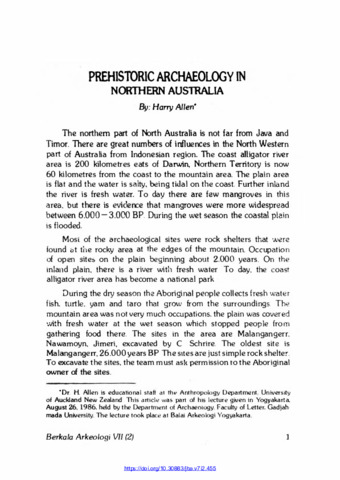 Allen, Harry (1986) Prehistoric Archaeology in Northern Australia. Berkala Arkeologi, 7 (2): 1. pp. 1-3. ISSN 0216 - 1419