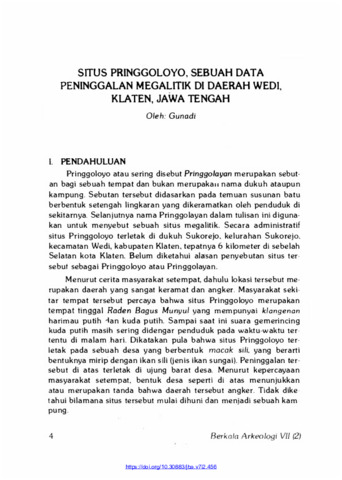 Kasnowihardjo, Gunadi (1986) Situs Pringgoloyo, Sebuah Data Peninggalan Megalitik di Daerah Wedi, Klaten, Jawa Tengah. Berkala Arkeologi, 7 (2): 2. pp. 4-13. ISSN 0216 - 1419