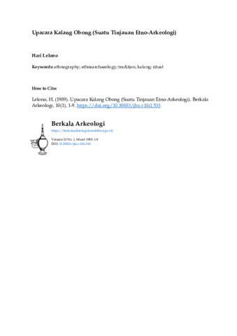 Lelono, Hari (1989) Upacara Kalang Obong (Suatu Tinjauan Etno-Arkeologi). Berkala Arkeologi, 10 (1): 1. pp. 1-9. ISSN 0216 - 1419