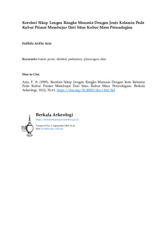 Aziz, Fadhila Arifin (1989) Korelasi Sikap Lengan Rangka Manusia dengan Jenis Kelamin Pada Kubur Primer Membujur dari Situs Kubur Masa Perundagian. Berkala Arkeologi, 10 (2): 4. pp. 52-61. ISSN 0216 - 1419